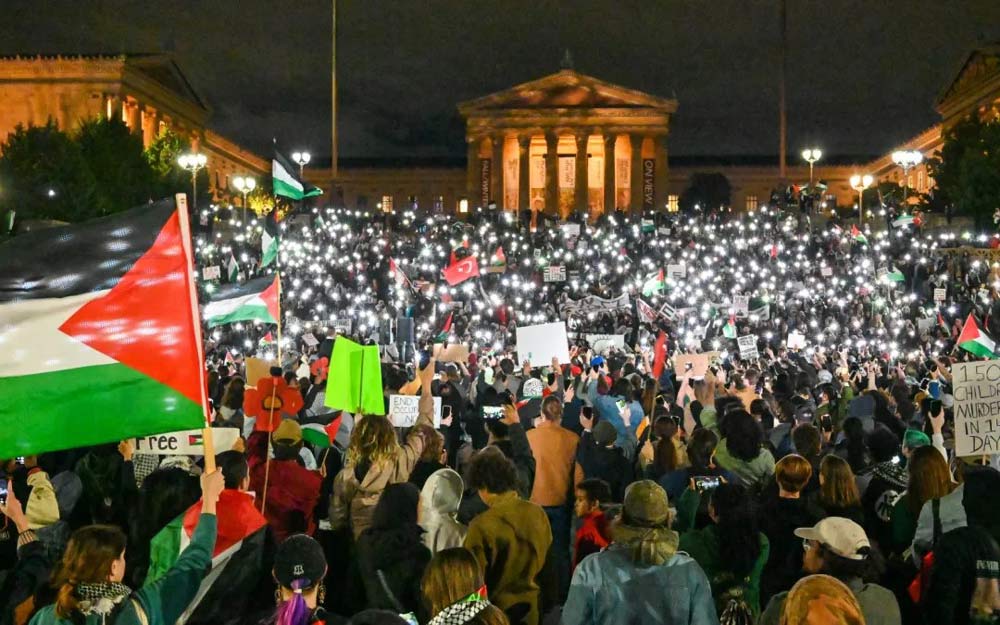 “This is not only media suppression, but an erasure of history,” said Philadelphia organizer Nour Qutyan, who helped assemble the rally.