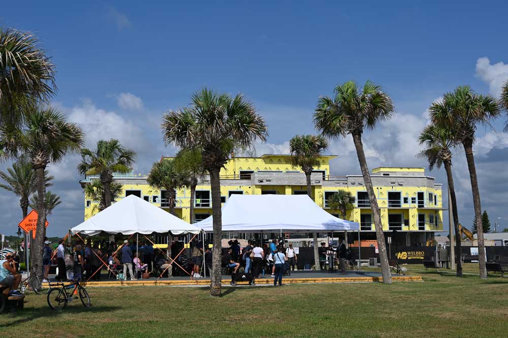 The beach, as critically eroded as ever, was a small distance to the right of the audience, past the greens of Flagler Beach’s Veterans Park, down that dip of dunes recent storms have all but ripped off. The vanishing dunes required the dumping of an emergency rock berm there last year, to keep the ocean from carving into State Road A1A next, as it has on two occasions since 2016 south of the pier.