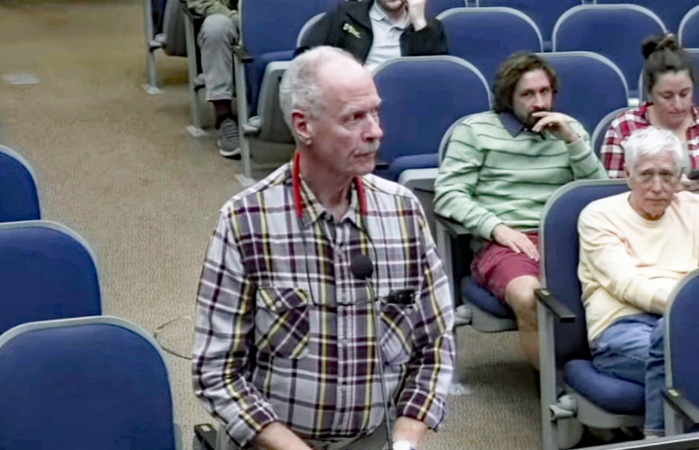 Stephen De Garmo, a resident of Point of Woods Drive in Palm Coast since 1981, well before Palm Coast was a city (he’s a native of Syracuse), and a nature photographer, sat and watched the proceedings with his wife René near the front. The presentations over, De Garmo was third to speak in the opening public comment segment. His three-minute address to the commission contrasted pointedly with the 45 minutes of gratuitous cheer he was following.