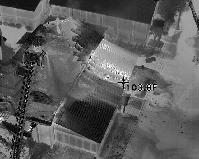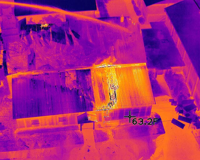 The drone team’s work included numerous thermal-imaging pictures taken during the fire, and showing the surface temperature of the building at the time each picture was taken. The purpose of the imaging during the fire was to give firefighters a sense of whether the fire was still active or not, and where, since often flames or smoldering would be invisible beneath structures.