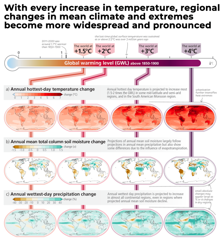 Every increment of warming will intensify climate-related hazards such as floods, droughts, heatwaves, fires and cyclones. Often, two or more hazards will occur at the same time.
