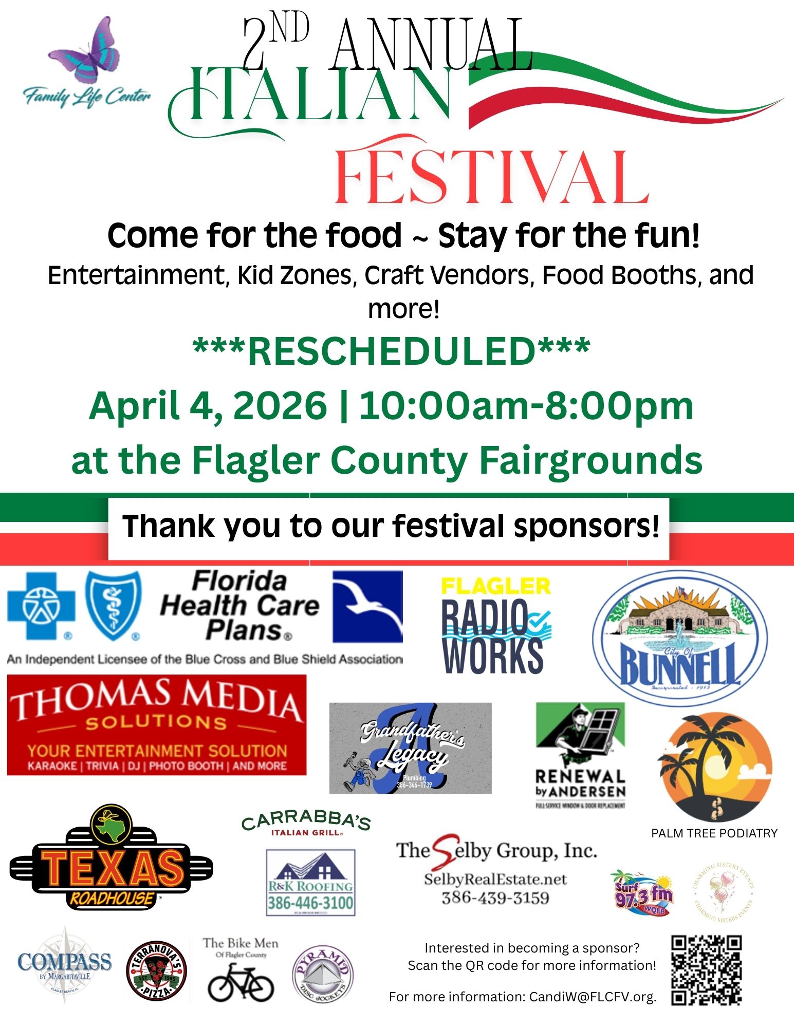The Second Annual Italian Festival is scheduled for Saturday, April 4, from 10 a.m. to 8 p.m. at the Flagler County Fairgrounds, 150 Sawgrass Road, Bunnell. The Family Life Center, in partnership with the City of Bunnell, are hosting the Festival. All proceeds will benefit survivors of domestic violence or sexual assault. With over 8,000 attendees at the inaugural event, this is one event you don’t want to miss! Click on this link for more information vendor opportunities. Admission will be $1 per person – children under 12 are free!