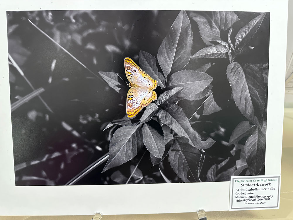 Everyone in the audience got to cast votes for the Flagler Palm Coast High School annual photo contest, which usually takes place at Creekside Music and Arts Festival. Creekside was scheduled for this weekend. It was postponed to February 7 and 8 because of weather. So the judging of the arts contest took place last night, with the People’s Choice Award to be held out until Creekside.