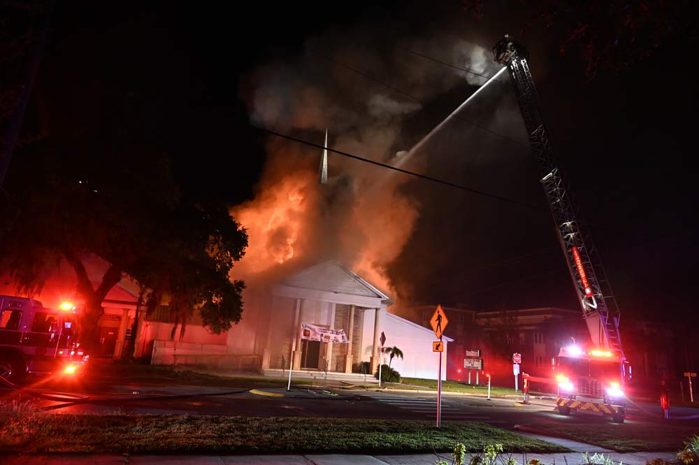 “Forty-nine years ago, I got married the first time in the church,” Bunnell mayor Catherine Robinson, who stood in disbelief before the smoking structure around 2 this morning, said. “At 19 I got baptized, my mother and I got baptized together in the church. Both my children were baptized as teenagers in this church. When I moved back here to Bunnell, when Rick and I got married and we both moved back here, we went to that church for a while.” On Sunday, Robinson had spent part of the day at the current Bunnell Baptist Church on Commerce Parkway, for a festival.