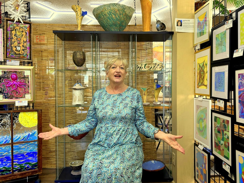 While a number of Flagler County galleries over the years have been opened by artists, Marge admits: “I admired people that did art, but I couldn’t even draw anything that looked like anything.” Rather, she adds, her motivation for GOLA was that she “felt like Flagler Beach would really benefit to be a little bit more of an artsy place.”