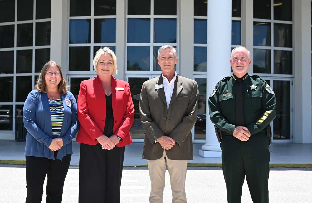 There, too, were Edmonson’s father, Flynn Edmonson, her mother, Rae Nescio Smith, and her stepfather, John Smith. It was fitting that both Edmonsons were there, because they were like layers to a historic occasion: all five Flagler County constitutional officers–Clerk of Court Tom Bexley, Edmonson, Property Appraiser Jay Gardner, Supervisor of Elections Kaiti Lenhart and Sheriff Rick Staly–were elected without opposition today, the first time an entire slate of constitutionals managed the feat in memory (but probably no the first in the county’s century-long history).