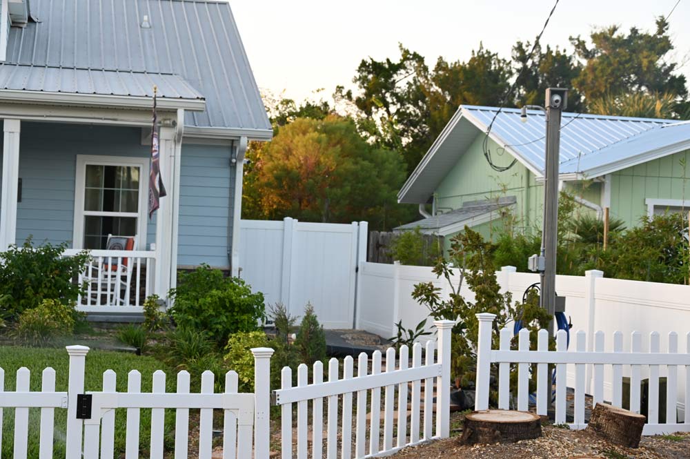 Huckabee accused her neighbors of using the cameras to spy on her or snoop on an outdoors shower attached to the side of her house, facing her neighbors’ house. a high fence separates the two properties, which are in very close proximity to each other. But a surveillance camera on that side of the house is situated high near the roof.