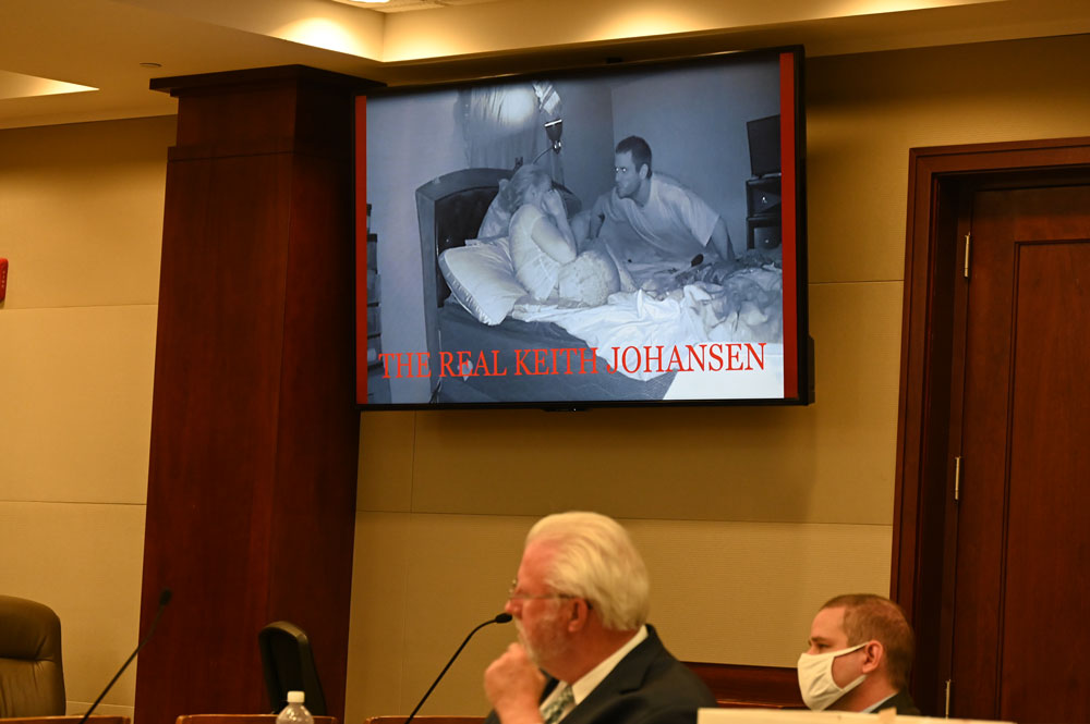 There was no such evidence. There was no video taken in that room at the time–the same room where Johansen had threatened his wife repeatedly, on camera. There was only Johansen’s allegation that Brandi had pointed a firearm at him, and Wood, his defense attorney, repeating that allegation.