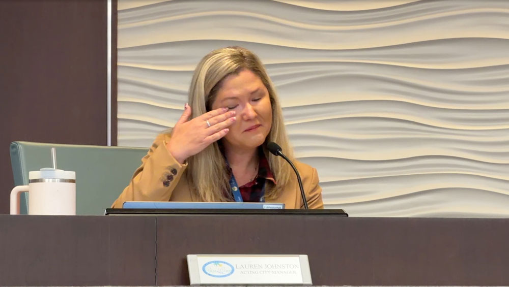 The council and city staff applauded Johnston at the end of Johnston’s nearly two-year tenure as acting city manager. She was appointed after the firing of Denise Bevan in March 2024. Johnston didn’t get fired. She’s not resigning. “I’m going back into my assistant city manager role,” she said after today’s council meeting, a role she’s been yearning for soon after getting handed the manager’s job, not entirely of her own choice.