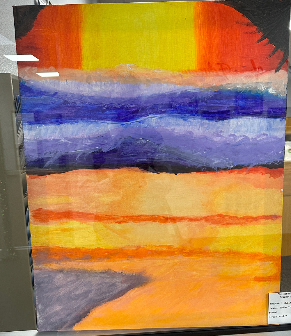 Notably: Another reason to love Superintendent LaShakia Moore: “Bring back that art!” Moore tells me she’s ensuring that student art work is not only turning the third floor of the district’s offices at the GSB into a gallery again, but she’s asked that the exhibits be refreshed every month. Walking the hall up there yesterday the work below caught my eyes, and, justly or not, reminded me of one of my favorite Rothkos. It’s by Indian Trails Middle School 7th grader Evelyn Athrean. She should have a conversation with JJ Graham and keep painting. For all I know she may even be one of his students.