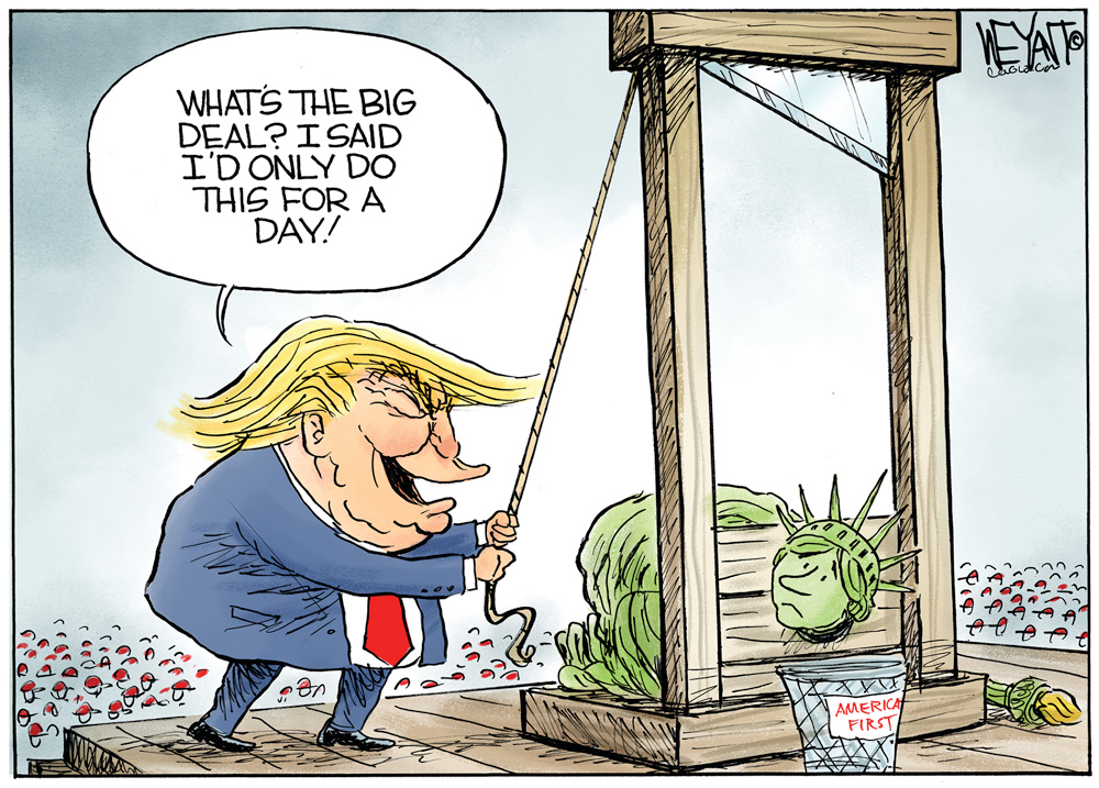 There should be another cartoon with Trump running the Constitution through a shredder on day one.