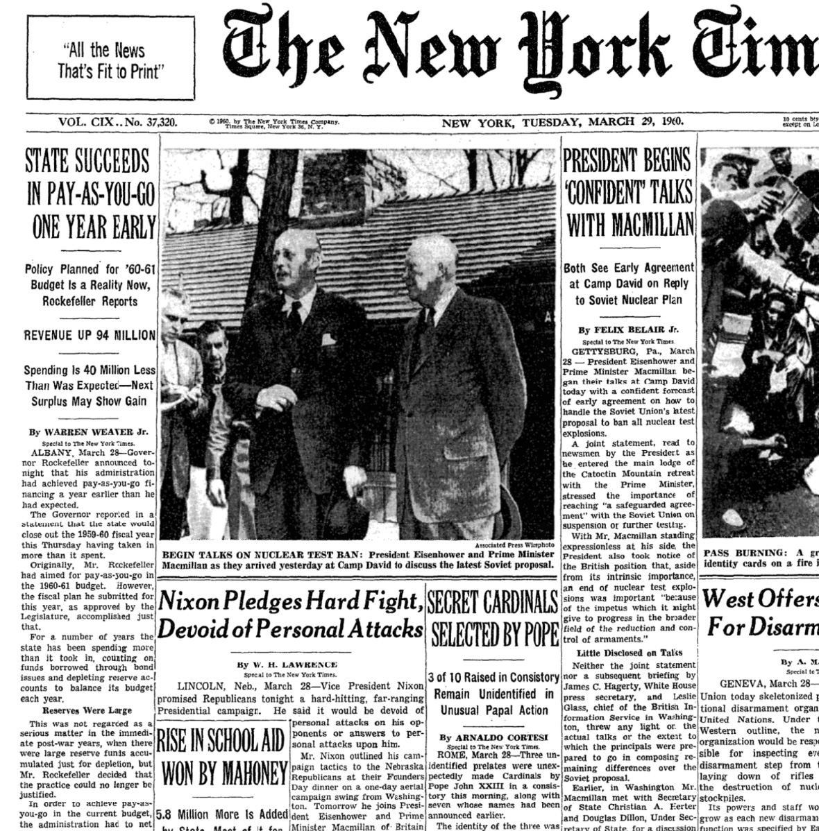 Notebook: The front page of the March 29, 1960, issue of the New York Times included a prominent story headlined, “Nixon Pledges Hard Fight, Devoid of Personal Attacks.” The headline writer could not possibly have predicted Nixon’s “I am not a crook” echo 13 years later, delivered at Disney’s Contemporary Hotel not far from the shop hawking Cruella de Vil merch. Even in 1960 the irony of the pledge, by a man who had soldered his reputation from lives he wrecked on the House Un-American Activities Committee, could not have been lost on anyone. For every Hiss he scored, untold reputations were smeared as he hid behind his and the current president’s favorite shield: the absolute immunity granted public officials lying, slandering, ridiculing or vilifying anyone, as long as it’s within the scope of official duties. That immunity did not exist for private individuals or the press smearing anyone, officials included. At least not until the U.S. Supreme Court unanimously ruled on Sullivan v. New York Times on March 9, 1964, a case triggered by the very same issue of the New York Times that featured Nixon lying on the front page. Flip past the pages with stories about the Supreme Court upholding the conviction of a Soviet spy, a warning from Castro to the United States to quit its “unfriendly” policies, a UN study blaming cancer on smoking, ads for J& B Scotch, the Studebaker Lark, TWA, Braniff and Easter Airlines ads, and there it was: the “Heed Their Rising Voices” ad with its minor factual errors that an Alabama court turned into a lynching of the New York Times, with a pedophile for a judge, until the U.S. Supreme Court overturned the judgment and established the “Sullivan” standard that remains with us to this day, for a few days more anyway: it is next on Trump’s fascist agenda.