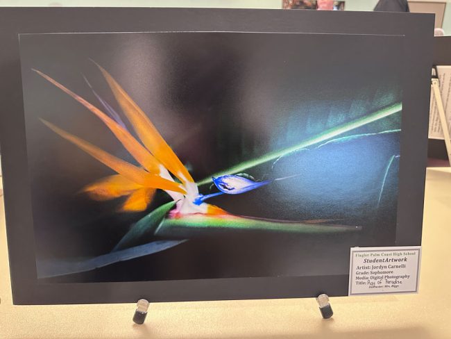 Notably: The photograph above, by Flagler Palm Coast High School sophomore Jordyn Carnelli, won second place and $200 in the annual photo contest that the Flagler County Cultural Council judges. In this case, anyone who turned up to its annual meeting on Oct. 1 got to vote; since I was reporting on the event, I did not, though I’d have voted Carnelli’s work in first. I like its hint of abstraction, its play with colors and darkness (one of these days walking the halls of FPC or Matanzas I’d like to see those god-awful “character” words like “self-control,” “collaboration,” “courage” and “responsibility” replaced by chiaroscuro (clearly, Carnelli’s favorite), impasto, scumble and sfumato). There’s something else I like about this picture: the homage, conscious or not, to Georgia O’Keeffe, “this astonishingly aggressive woman,” Joan Didion called her, I’m not sure why, “her astonishingly aggressive paintings.” I’ll have to look again. Anyway, nice to see Carnelli’s work survived our school censors. The more I look at the piece, the more I like it.