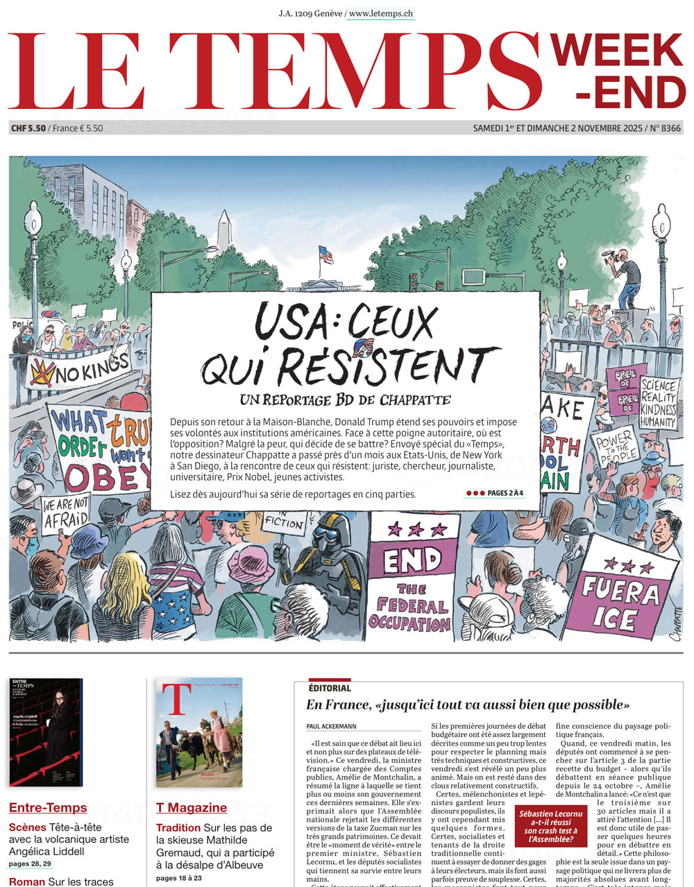 Notably: Newspapers are discovering graphics as a storytelling form. At the beginning of November Le Temps, the Swiss French-language daily, launched a series of reports on the American resistance to Trump–not as traditional reporting, though it’s very much been that, but as a graphic series (calling it comics doesn’t fit). The five-part series is written and illustrated by Patrick Chappatte, a Lebanese-Swiss cartoonist whose work appears all over the globe. It’s no different than standard reporting, but in drawings. In the first installment he interviewed Donald Ayer, deputy Attorney General from 1989 to 1990 under President George H. W. Bush and former clerk for William Rehnquist, who told Chappatte that American democracy is hanging by a thread. He interviewed Ardem Patapoutian, the Lebanese-American Nobel prize winner in biology for his work in molecular research, who worries about ICE throwing him out, and he inerviewed Terry Moran, who was thrown out by ABC News after a 26-year career there, all because he wrote, not in so many words, that Stephen Miller is a “world class hater.” Good journalism, Moran tells Chappatte, is still one of the best way to fight back. “Trump is getting ready to fundamentally change our democracy,” Moran says. “It’s the most important story of my career.” The series continued along those lines. The New York Times has been doing likewise. On Oct. 21 and Nov. 20, it ran a graphic OpEd reported by Jake Halpern and illustrated by Michael Sloan called “Separation,” “a series following one Honduran family as they navigate America’s shifting immigration landscape. The story is based on firsthand reporting, legal documents and excerpts from the eldest son’s journal.” It’s ongoing. As is the demolition of democracy both projects are documenting.