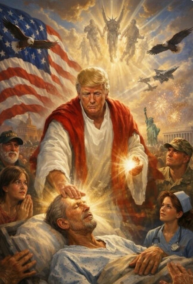 And Trump posted an AI picture of him dressed as Christ healing a prone figure yesterday. When criticized by both sides, he removed it saying it showed him as a doctor. Sure. Same guy who sent out that lovely Easter post. Same guy that has taken to criticism of the Pope because he’s had the temerity to speak out against war.