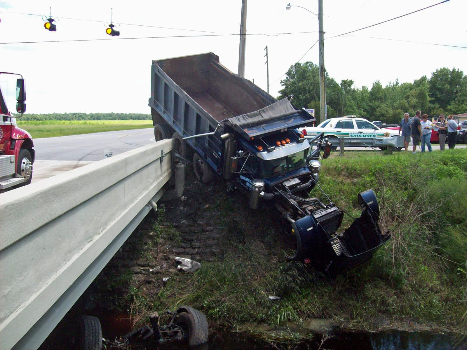 Ricky Madden, the 42-year-old driver of the moving truck and its crew chief, attempted to avoid the car, but the truck ended up hitting the triangular concrete curb at the foot of the exit, tipping the truck. Madden said there was nothing he could do beyond that point but pray. The truck ended up on its side, facing east, in the northernmost lane of State Road 100.