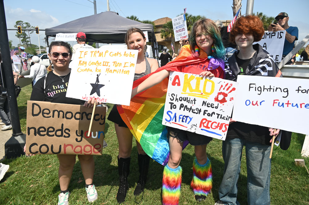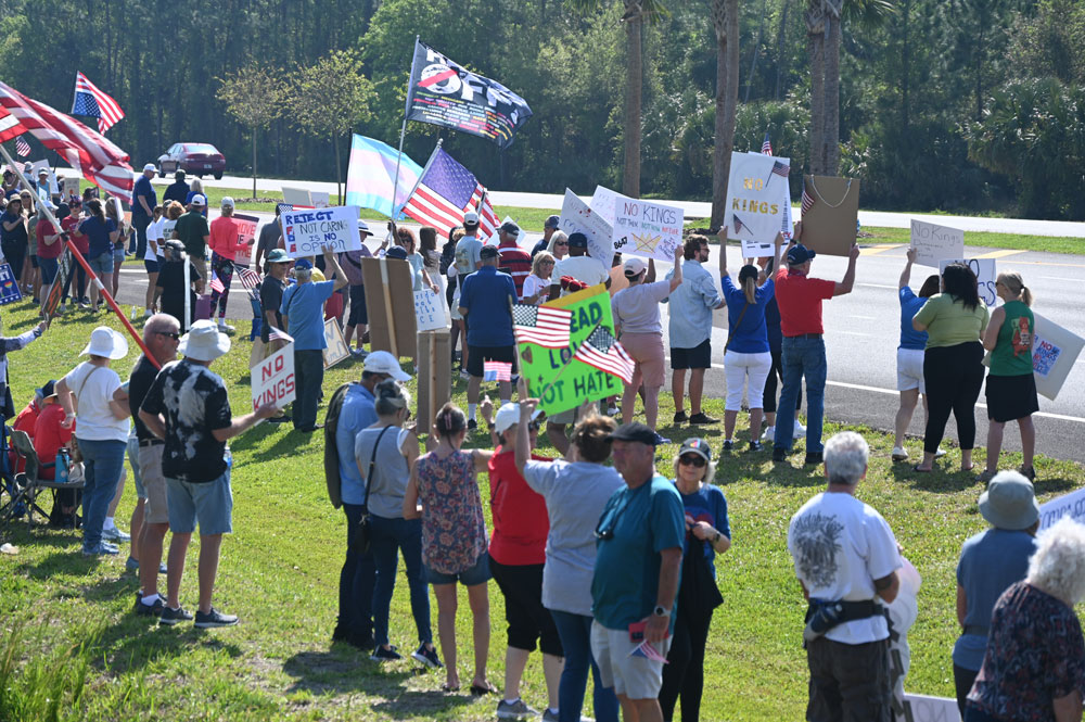 A 65-year-old Palm Coast man who identified himself as just Joe wanted a reporter to “include both sides,” and railed at the protesters, calling them “moronic” and “a complete waste of time” because their message “makes no sense. ‘No kings.’ I’m not seeing what they’re talking about,” he said. “I think what their biggest problem is, and not to belittle this whole conversation, is that they’re out protesting constantly about no kings, Trump, ICE, this, that. How about not mentioning Trump? I could actually listen to them myself if they actually didn’t say one word about Trump. But just tell us what you’re going to do to make the country better. What are your policies? What are your things that you want to implement in this country? How about saying those things? And then I might listen.”