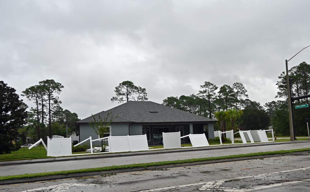 Lord had been in the field with the Sheriff’s Office, the Palm Coast Fire Department and Flagler County Fire Rescue, along with FPL and Palm Coast Public Works crews, some of which were clearing roads of tree limbs. “It’s hard to see it right now, obviously daylight is when we can really see, but we don’t know of any injuries at this point in time.” But, he said, “we’ve definitely had some structures impacted. Definitely lots of wires down, trees down.”