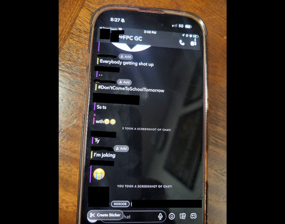 “M.P. was very apologetic and remorseful and realized that his actions could instill fear in the persons within the group,” the boy’s arrest affidavit said. “M.P. stated that he wrote slimeyou out #dontcome to school. When asked what slimeyouout meant M.P. stated that it means to hurt or shoot. M.P. stated he was immediately removed from the group but was added back a few hours later at which time he apologized and stated the comments were a joke.”