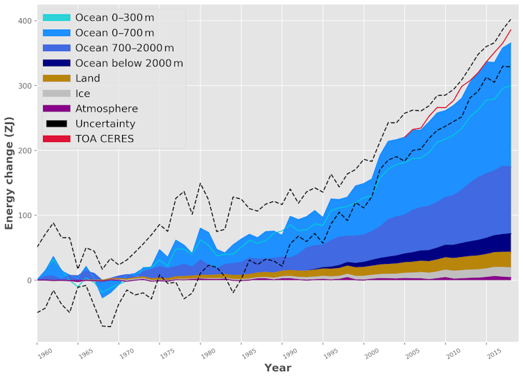 Ocean warming buffers the worst impacts of climate change, but it’s not without cost. Sea levels are rising because heat causes water to expand and ice to melt. Marine ecosystems are experiencing unprecedented heat stress, and the frequency and intensity of extreme weather events is changing.