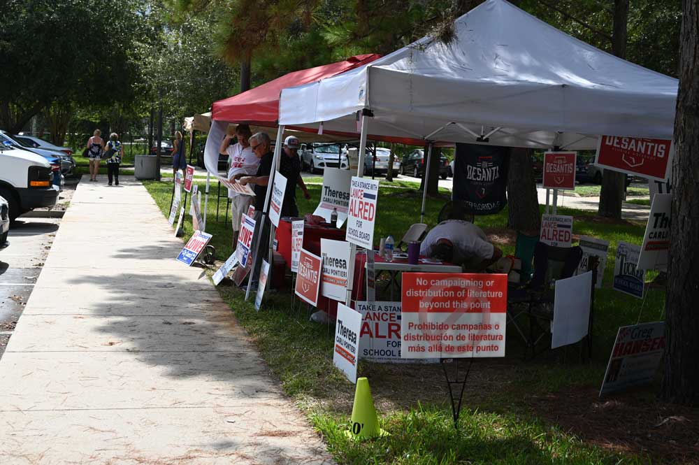 “I’ve been with the county 19 years, and I have seen it all, obviously, at the library,” Albanese said. In her role as library director, she’s had a front-row seat to the busiest early voting site in the county, and the site most favored by political candidates’ campaigning campouts. “Over the years, I’ve seen huge change. It used to be just signs, and then people lining the sidewalks. And over the years, it’s gotten just more congested, more people, and obviously the county is growing, so you’re going to get more people out there.