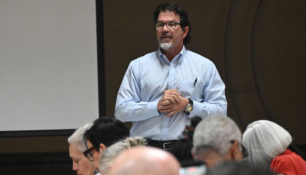 Chiumento’s description of the plan for Tract 3 drew the first of three loud protests from Michael Martin, an L-Section resident, an elected member of the county’s mosquito board and a former member of the city’s Charter Review Committee: “You can’t build on a fairway or over abutting property owners. That’s the case on Tract 3. You can’t build behind anyone. Our rear view shall be maintained. That’s the Land Development Code,” Martin yelled out.