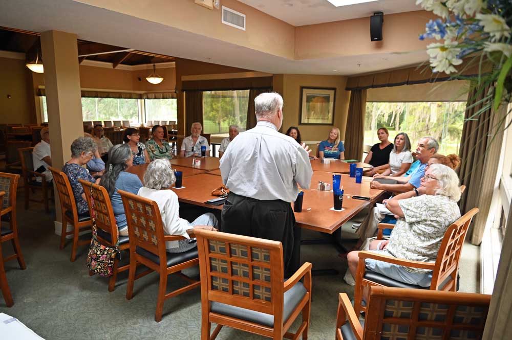 Today, two of the parents, Tray and Watts, were in Palm Coast as the guests of the weekly meeting of the Atlantic Chapter of Americans United for the Separation of Church and State, a non-profit Chaired by Rabbi Merrill Shapiro. The parents’ appearance drew some 20 people to the Pine Lakes Golf Club venue where the group usually meets every Wednesday, usually in smaller numbers.
